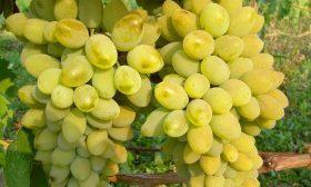 Ягоды – визитная карточка этого сорта. Даже при достижении полной физиологической зрелости они сохраняют свойственный им желтовато-зеленый цвет, который на солнце может приобретать теплый золотистый оттенок. Форма ягод овальная, вес каждой находится в пределах 3-4 граммов.