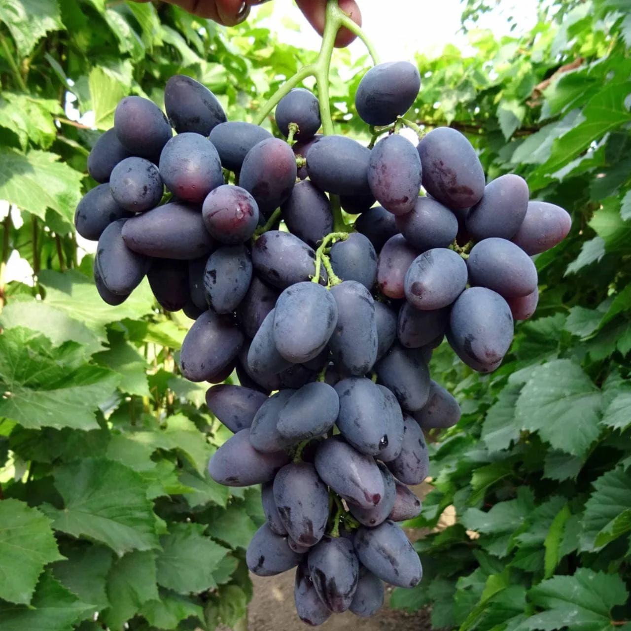 Грозди имеют коническую форму и умеренно рыхлую структуру. Такая плотность считается оптимальной: ягоды не сдавливают друг друга, что улучшает проветривание и снижает риск развития гнилей в дождливый период.