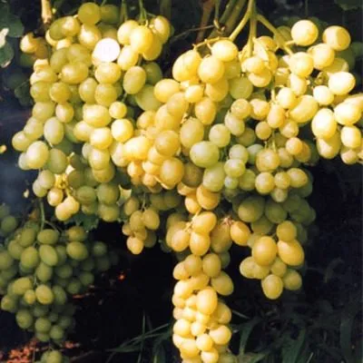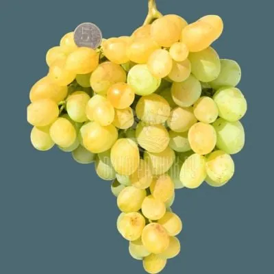 Ягоды крупные, их вес стабильно держится в диапазоне 7-9 граммов, что является отличным показателем для бессемянной формы. Форма овальная, иногда слегка яйцевидная. Главной отличительной чертой является окраска. Основной цвет – молочно-белый, кремовый.
