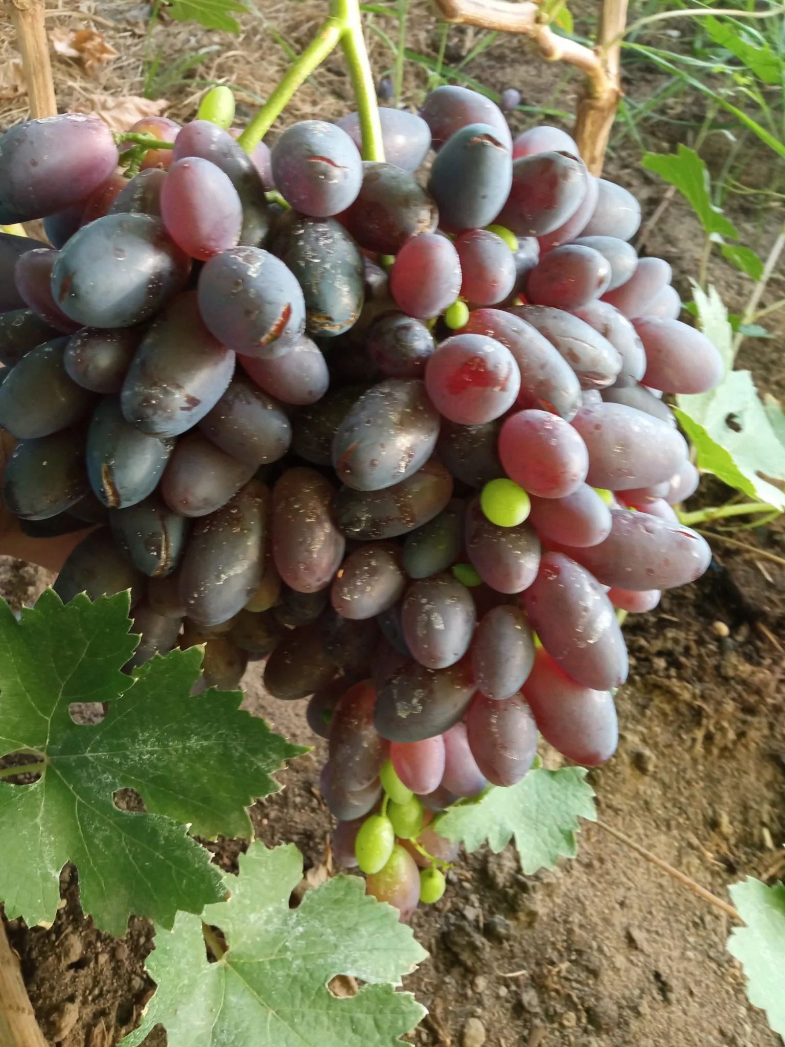 Темно-красно-фиолетовые, удлиненно-овальные ягоды с восковым налетом имеют привлекательный товарный вид. Кожица средней толщины при еде не ощущается, что повышает потребительские качества. Грозди довольно рыхлые или средней плотности, что является плюсом, так как снижает риск поражения гнилями внутри кисти.