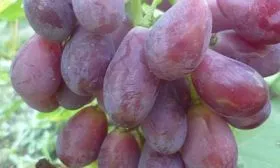 Именно ягода является наиболее узнаваемой чертой этого сорта. Она имеет правильную, вытянутую каплевидную, или сосковидную, форму. Окраска в технической спелости — красно-фиолетовая. При полном созревании на хорошо освещенных участках ягоды набирают интенсивный, глубокий фиолетовый оттенок с равномерным покровом воскового налета (пруина).