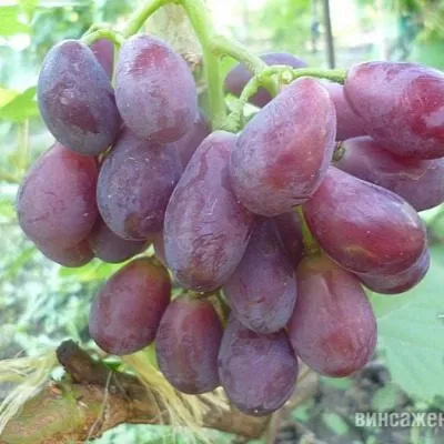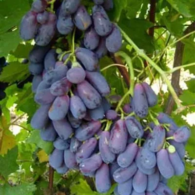 Именно ягода является наиболее узнаваемой чертой этого сорта. Она имеет правильную, вытянутую каплевидную, или сосковидную, форму. Окраска в технической спелости — красно-фиолетовая. При полном созревании на хорошо освещенных участках ягоды набирают интенсивный, глубокий фиолетовый оттенок с равномерным покровом воскового налета (пруина).