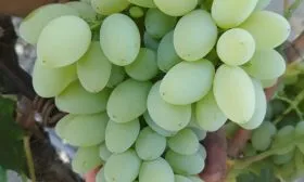 Ягоды — главная гордость сорта. Они отличаются правильной, слегка овальной формой и весом 3-5 граммов, что для бессемянного сорта (кишмиша) является хорошим показателем. При полном созревании окраска меняется на желто-зеленую с золотистым оттенком на солнечной стороне, что в виноградной практике часто характеризуется как «белая».