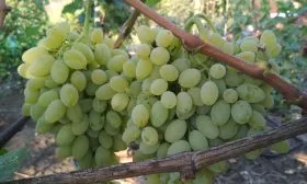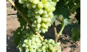 | Форма и вес ягоды | Овальная, 3-5 г | Крупный размер для кишмиша обеспечивает высокий товарный вид и урожайность. |
