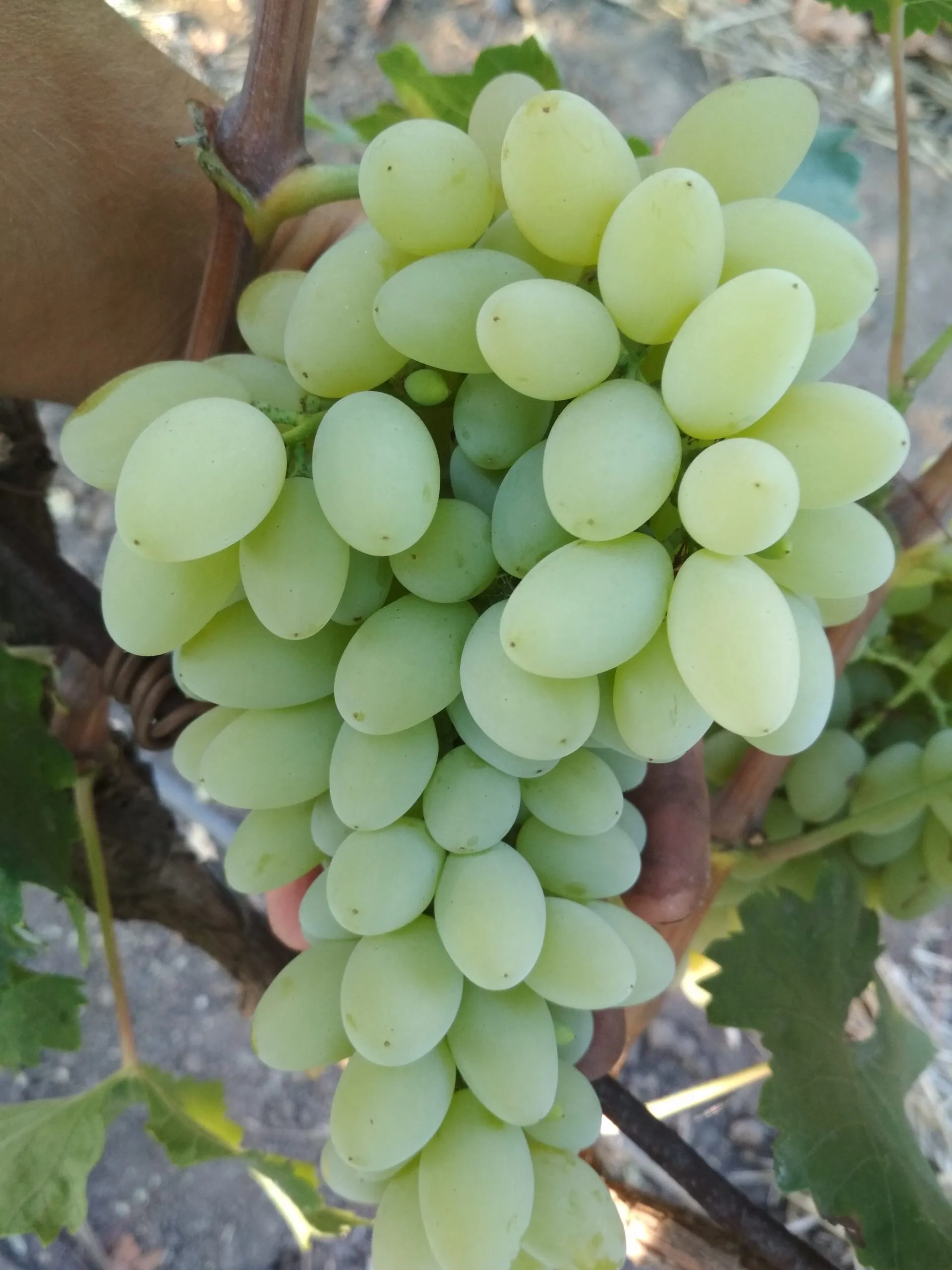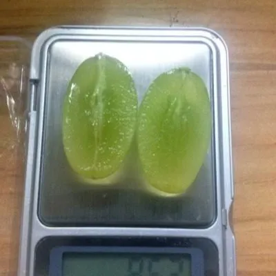 Ягоды — главная гордость сорта. Они отличаются правильной, слегка овальной формой и весом 3-5 граммов, что для бессемянного сорта (кишмиша) является хорошим показателем. При полном созревании окраска меняется на желто-зеленую с золотистым оттенком на солнечной стороне, что в виноградной практике часто характеризуется как «белая».