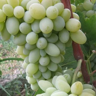 | Форма и вес ягоды | Овальная, 3-5 г | Крупный размер для кишмиша обеспечивает высокий товарный вид и урожайность. |
