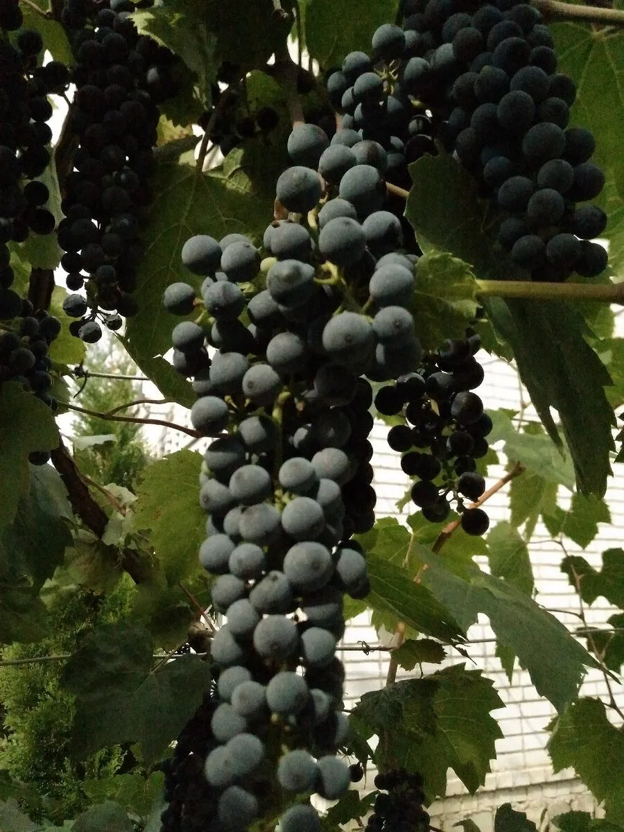 Черная окраска ягод указывает на высокое содержание антоцианов — красящих веществ, которые переходят в сусло и определяют интенсивность цвета будущего вина. В сочетании с высоким сахаром это делает урожай ценным сырьем для производства насыщенных красных вин, в том числе купажных, где он может выступать как основа для цвета и тела.