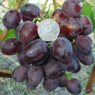 От знаменитого среднеазиатского сорта Ризамат новый гибрид унаследовал выдающиеся товарные качества: очень крупный размер ягод, их привлекательную тёмно-фиолетовую окраску и приятный, насыщенный вкус. Это обеспечило сходство с эталонными столовыми сортами.