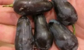 Ягоды крупные, массой 5-7 граммов, что хорошо ощутимо при дегустации. Их форма не круглая, а заостренно-овальная, что служит надежным визуальным маркером сорта. Окрас насыщенный, иссиня-черный, с обильным естественным восковым налетом (пруином), который придает ягодам матовый оттенок и выполняет защитную функцию.