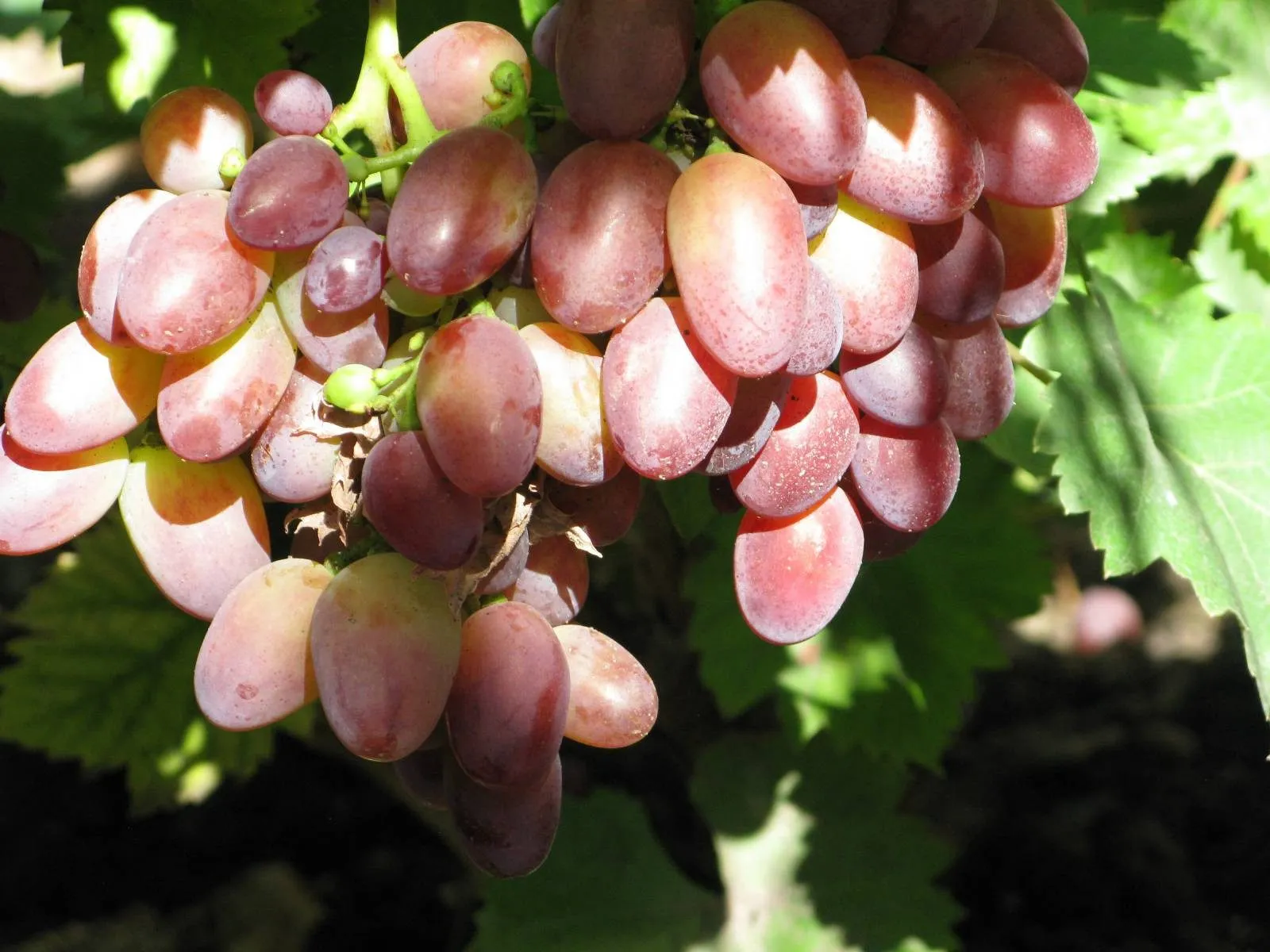 Главная гордость этого гибридного сорта — его плоды, которые по многим параметрам являются эталонными для столового винограда. Их уникальность начинается с формы: классическая сосковидная, или овально-сосковидная, конфигурация с заостренным кончиком делает гроздь легко узнаваемой и очень презентабельной.