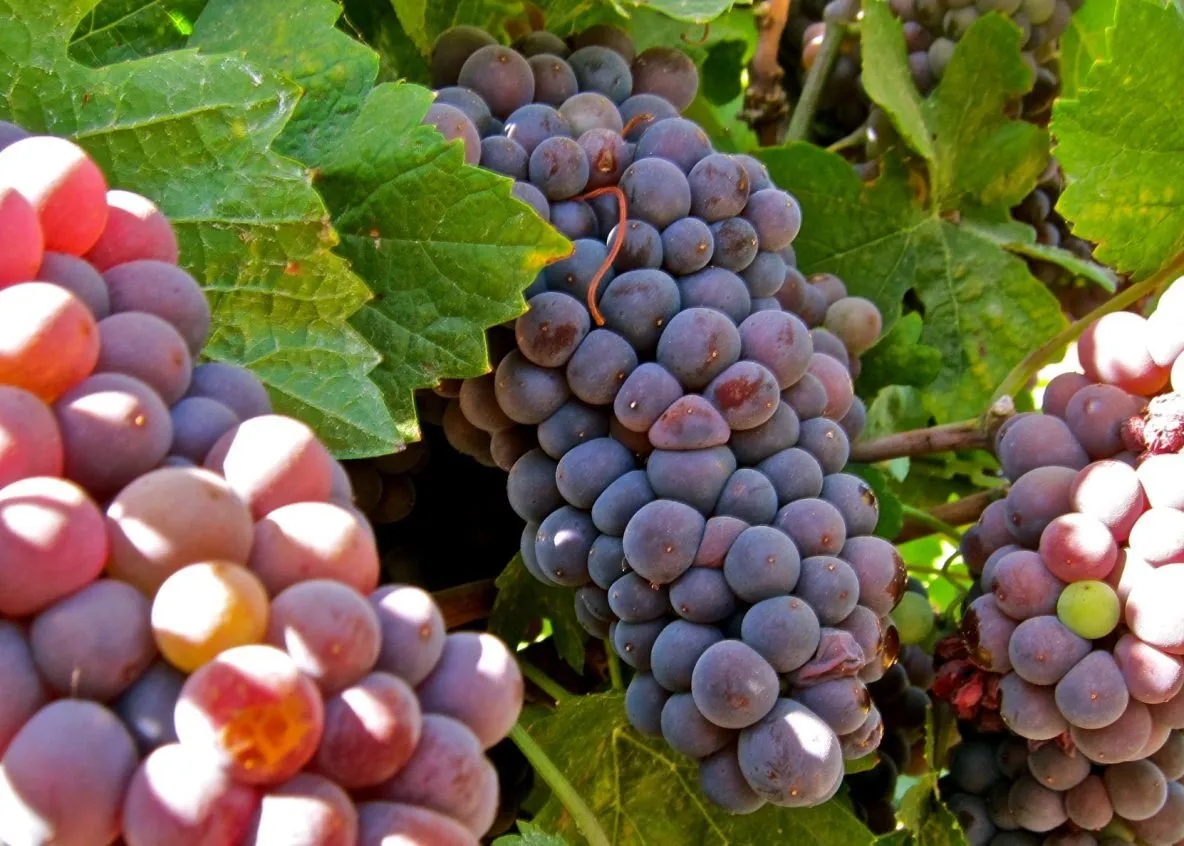 Техническая зрелость для этого технического сорта наступает не только по календарю. Визуальным сигналом служит переход цвета ягод в характерный розовато-серый оттенок, при этом деформированная форма ягод становится еще более заметной. Органолептически исчезает травянистый привкус, проявляется заявленная гармоничность.