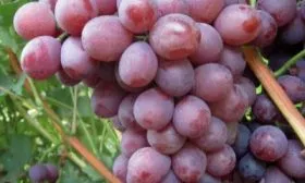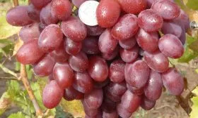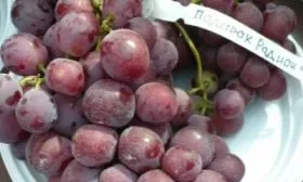 Ягоды — визитная карточка этого винограда. Их размер, 8-10 граммов, относит сорт к категории крупноплодных. Форма преимущественно округлая, иногда со слабо выраженной овальностью. Окрас в полной зрелости — насыщенный темно-розово-красный.