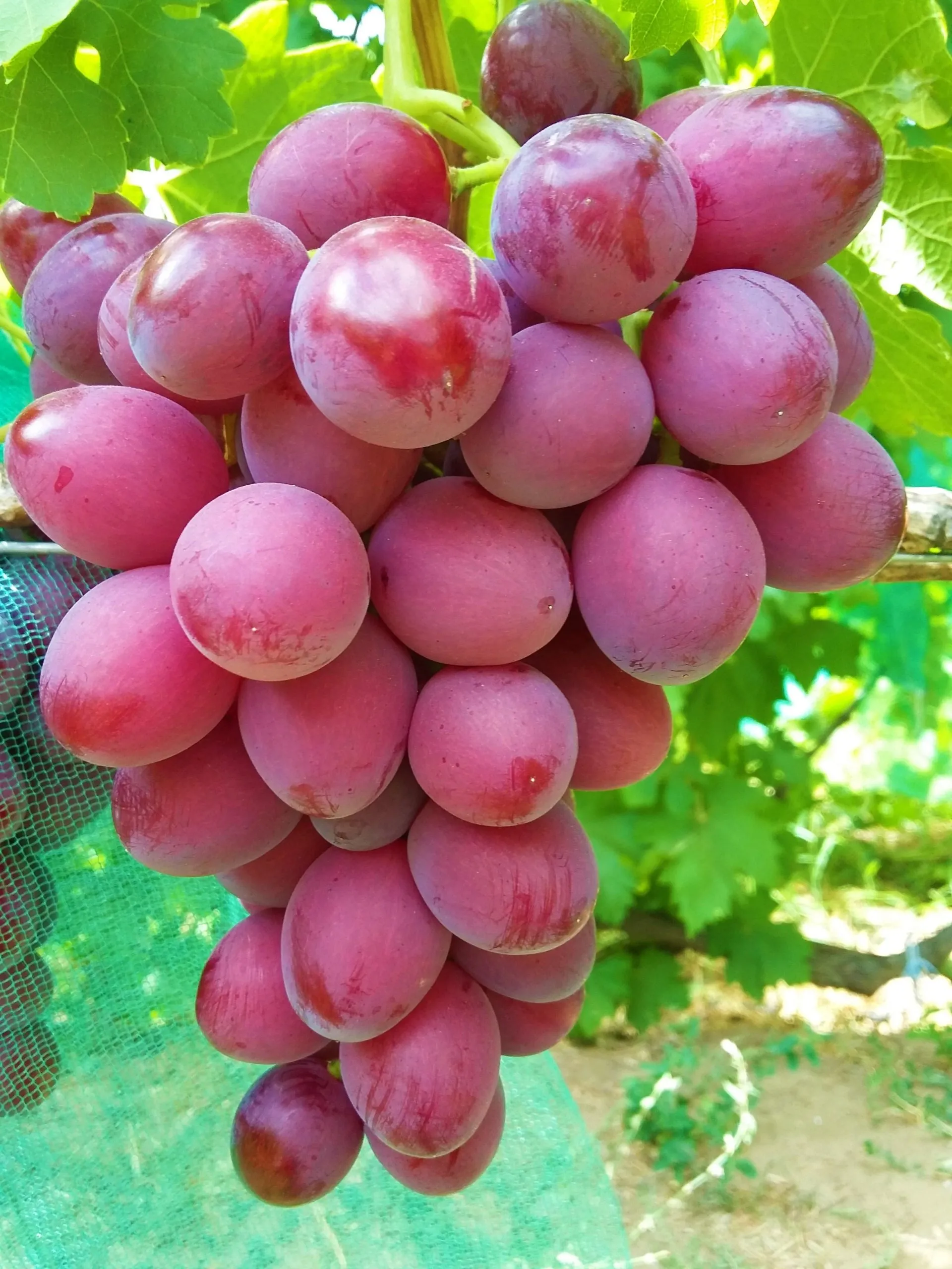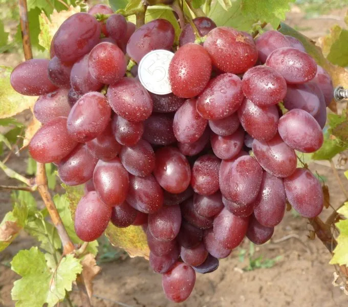 Ягоды — визитная карточка этого винограда. Их размер, 8-10 граммов, относит сорт к категории крупноплодных. Форма преимущественно округлая, иногда со слабо выраженной овальностью. Окрас в полной зрелости — насыщенный темно-розово-красный.