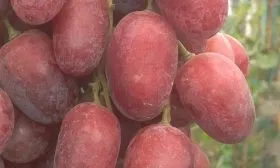 Ягоды овально-вытянутой, иногда сосковидной формы, действительно гигантские, их вес колеблется от 16 до 22 граммов. Кожица при полном созревании приобретает нежный равномерный розовый цвет, а на солнечной стороне грозди может проявляться теплый янтарный загар.