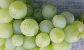 Поверхность покрыта густым слоем воскового налета (пруина), который хорошо виден невооруженным глазом. Этот природный барьер защищает ягоду от механических повреждений и частично от испарения влаги. Мякоть белая, сочная, без выраженной ароматики. Вкусовой профиль простой, сбалансированный, кисло-сладкий, что типично для многих технических сортов.