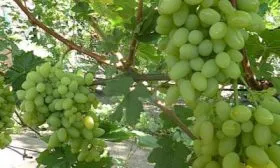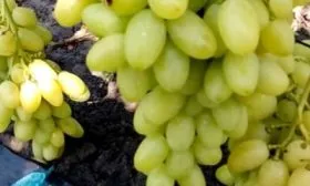 Окраска при полном созревании — белая. На солнечной стороне ягоды могут приобретать легкий приятный янтарный или золотистый «загар». Кожица средней плотности, при еде практически не ощущается, что важно для потребительских качеств столового винограда.