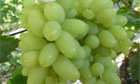 Урожайность заявлена как высокая, что подтверждается солидными параметрами грозди и ягоды. Средний вес кисти от 600 до 800 граммов, а отдельные ягоды достигают 10-12 граммов, что является выдающимся показателем для белого винограда. Форма плодов удлиненно-овальная с характерным заостренным кончиком, что служит одним из визуальных признаков сорта.