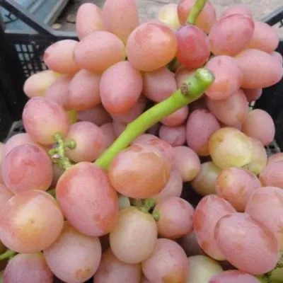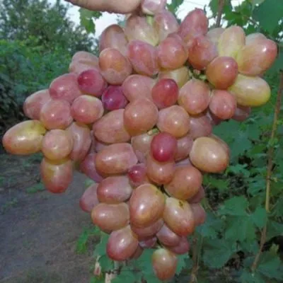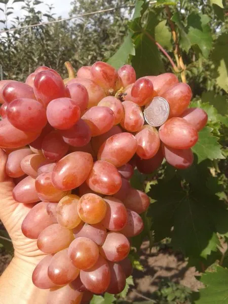 Ягоды массой 10–12 граммов, яйцевидной формы и розового цвета, выглядят очень эффектно. Тонкая, но при этом плотная кожица не ощущается при еде и хорошо защищает мякоть при перевозке. Мякоть мясисто-сочная, гармоничного вкуса с устойчивым мускатным тоном, который не исчезает даже в неблагоприятные по погоде годы. Именно это стабильное проявление муската, унаследованное от «Кишмиша лучистого», высоко ценится садоводами.