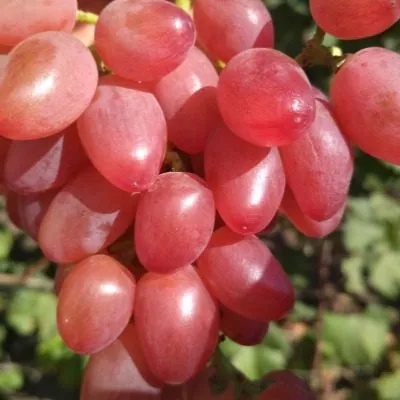 Ягоды – главный козырь этого винограда. Их овально-вытянутая форма, известная среди садоводов как «пальчиковая» или «дамский пальчик», и ярко-красный цвет делают гроздь очень товарной. На солнечной стороне окраска может становиться более насыщенной, с розоватым отливом.