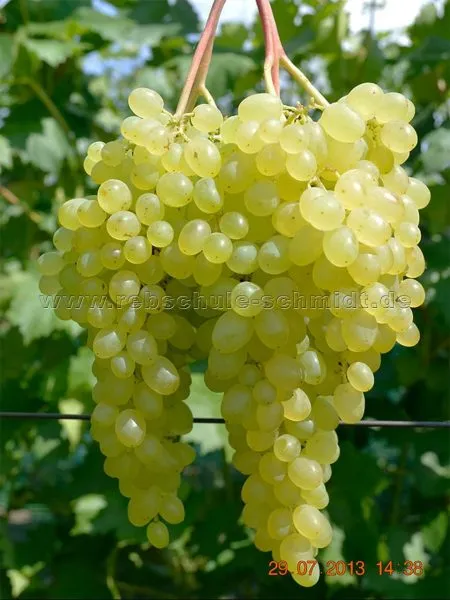 Ягоды — главное достоинство этого кишмиша. Их окраска в технической зрелости — равномерный бело-золотистый цвет. При полном созревании на солнечной стороне может проявляться легкий янтарный «загар», что служит визуальным индикатором оптимальной сахаристости.