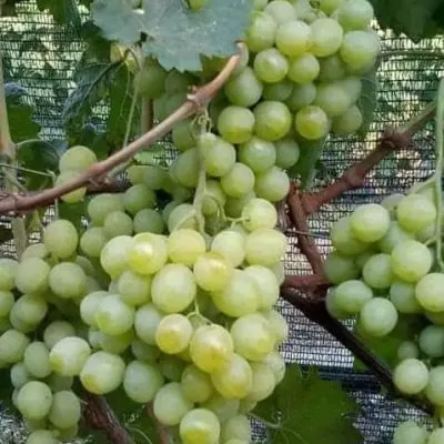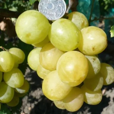 Ягоды крупные, однородные, округлой или слабо-овальной формы. Тонкая, но прочная кожица при употреблении в свежем виде практически не ощущается, что высоко ценится в столовых сортах. Ее окраска в состоянии полной зрелости – светлая, от бело-желтой до янтарной, с характерным легким пруиновым (восковым) налетом, который выполняет защитную функцию.