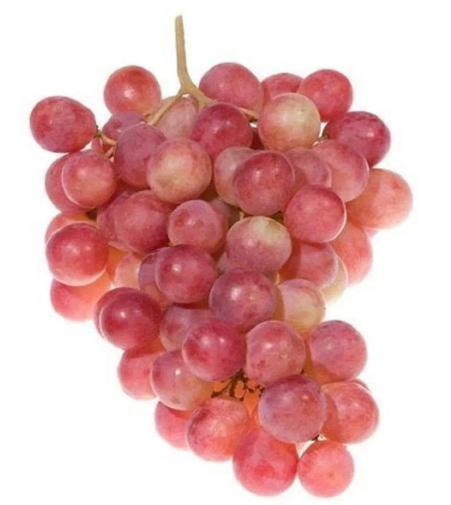 Ягоды округлой, близкой к овальной, формы, выровненные по размеру. Розовая окраска кожицы может варьироваться по интенсивности даже в пределах одной грозди, от нежно-розового до более яркого оттенка. Легкий пруиновый налет (восковой) придает матовость и выполняет защитную функцию.
