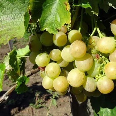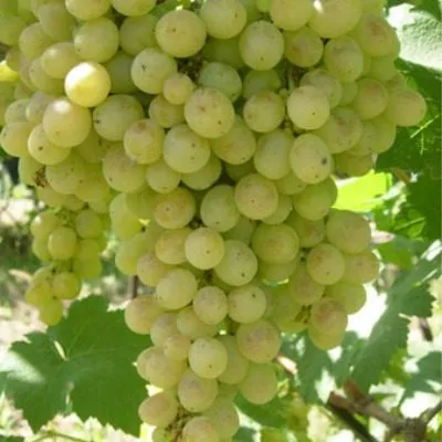 Ягоды — главный козырь сорта. Их продолговатая, иногда со слабым заострением кончика форма и крупный размер (6-7 г) делают гроздь очень нарядной. Окраска динамична: в начале созревания ягоды зеленовато-белые, но по мере накопления сахаров уверенно приобретают равномерный золотисто-желтый оттенок, часто с легким загаром на солнечной стороне.