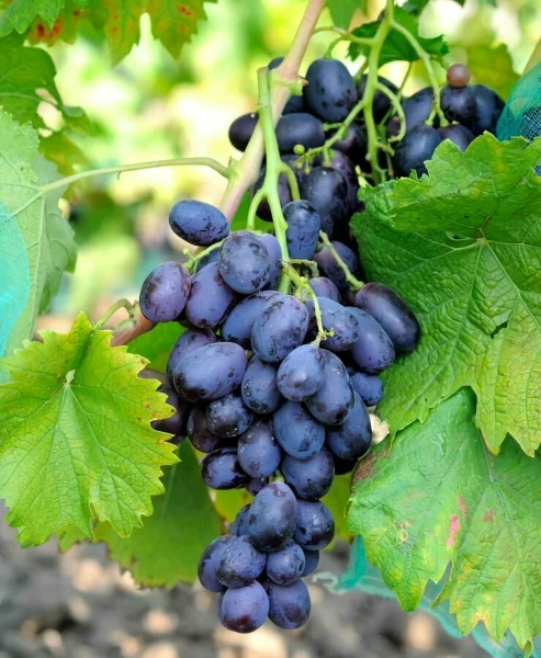 Визуально зрелая гроздь выглядит эффектно благодаря контрасту темно-синих ягод с хорошо заметным светлым пруином. Созревание ягод в кисти происходит достаточно равномерно, что является практическим преимуществом при сборе урожая для виноделия, когда важна однородность сырья по степени зрелости.