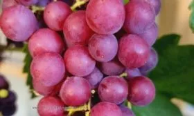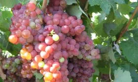 Ягоды бессемянные (кишмишные), овальной формы, с ярко-розовой окраской. Плотная, но съедаемая кожица в сочетании с хрустящей мякотью обеспечивает приятную текстуру. Вкус гармоничный, с выраженными фруктовыми тонами средней интенсивности, которые хорошо раскрываются при накоплении сахара в диапазоне 190-220 г/дм³ при умеренной кислотности.