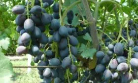 Ягода — ключевое достоинство сорта. Гармоничный вкус с мускатными нотками раскрывается полностью только при достижении полной физиологической зрелости, которую не стоит путать с окрашиванием. Ягоды могут приобрести насыщенный черный цвет за 1-2 недели до полного набора сахара. Ориентиром служит не только цвет, но и вкус мякоти у семян, а также одревеснение плодоножки.