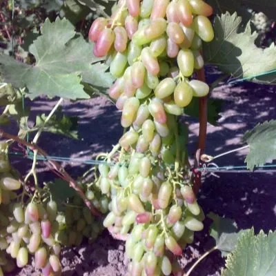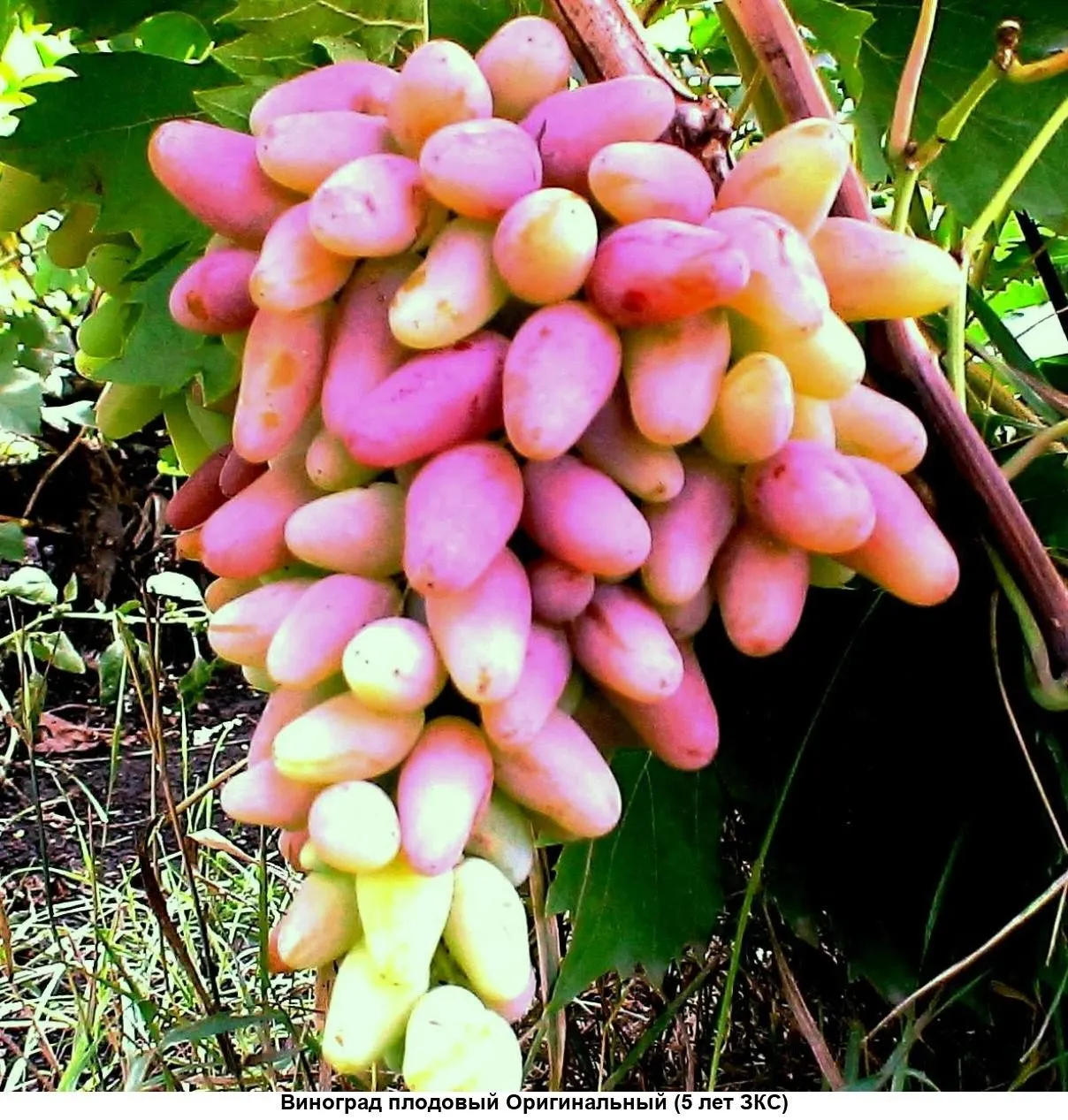 От материнского сорта Кобзарь была взята основа — хорошая и стабильная урожайность, а также приятный, гармоничный вкус ягод. От отцовского сорта Оригинал новый гибрид перенял эффектный внешний вид, а именно уникальную удлиненно-яйцевидную форму ягод и их крупный размер, что в итоге определяет товарность грозди.