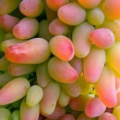 Ягоды — ключевая особенность сорта. Их удлиненно-яйцевидная, или сосковидная, форма — наследственный признак, полученный от родительского сорта Оригинал. Окрас неоднородный и переливчатый: от бело-зеленоватого у плодоножки до нежного розового румянца на солнечной стороне. Полнота окраса напрямую зависит от инсоляции.
