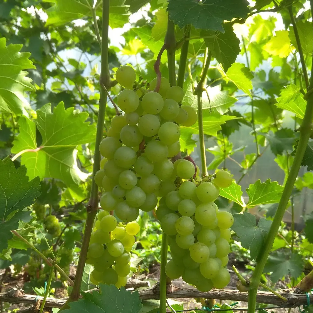Грозди у сорта плотные, их вес может достигать 250 граммов. Ягоды округлой формы, их окраска варьируется от изумрудно-зеленой до белой с привлекательным золотистым оттенком на солнце. Вкус описывается как неповторимо нежный и сладкий, без выраженной кислотности, что характерно для многих сверхранних форм.