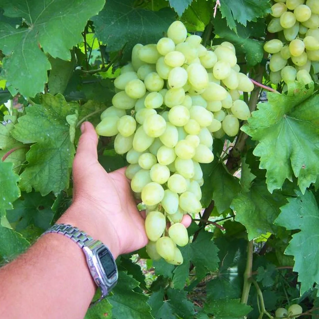По мере накопления сахаров окраска меняется от зеленовато-желтой до насыщенного золотисто-желтого тона. На ягодах, постоянно освещаемых солнцем, часто проявляется тёплый янтарный «загар» — это не дефект, а показатель полноценной физиологической зрелости. Плотная, но негрубая кожица — ключевая особенность, обеспечивающая хорошую транспортабельность и устойчивость к растрескиванию при перепадах влажности. Она также служит надёжным барьером против повреждения осами, которые часто атакуют более тонкокожие сорта.