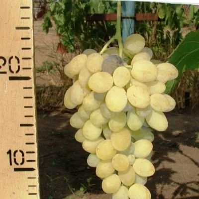 Главная визуальная особенность сорта — крупные, эффектные ягоды, которые формируют рыночную привлекательность грозди. Их средняя масса в 8-10 граммов является стабильным сортовым признаком, что выгодно отличает его от многих других ранних столовых форм. Форма преимущественно овальная, иногда с лёгким сужением к кончику, что придаёт ей сходство с яйцевидной.