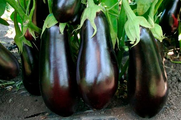 - Плоды. Удлинённой грушеобразной формы и большого размера, их вес варьируется от 300 до 1000 г, а длина от 8 до 15 см. Средний диаметр – 10 см. Кожура тёмная фиолетовая, блестящая и плотная.