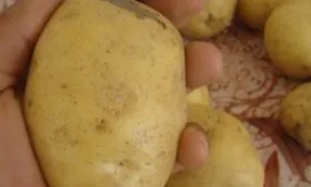 Поверхность клубня покрыта плотной, гладкой кожурой равномерного желтого цвета. Благодаря этой особенности картофель хорошо защищен от механических повреждений во время уборки, транспортировки и хранения. Глазки мелкие и залегают неглубоко, что значительно упрощает процесс очистки.
