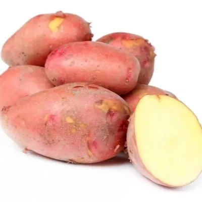 Поверхность покрыта гладкой кожурой насыщенного красного цвета. Такая структура не только придает картофелю привлекательный вид, но и делает его менее подверженным механическим повреждениям при сборе урожая. Глазки залегают неглубоко и их немного, что значительно сокращает количество отходов при очистке.