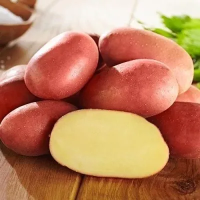 Форма преимущественно овальная, часто удлиненно-овальная, что отличает ее от сортов с округлыми клубнями. Поверхность ровная, без выраженных бугров, с гладкой кожурой интенсивного красного цвета.