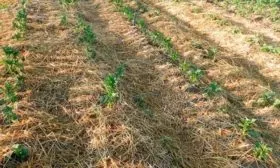 Через неделю после посадки удалите сорняки в междурядьях, а затем, по мере роста, повторяйте эту процедуру каждые 7 дней. Одновременно присыпайте влажной землёй стебли растений и рыхлите грунт.