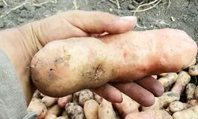 Убирать урожай следует в сухую, солнечную погоду. Из-за тонкой кожуры, характерной для этого сорта, клубни требуют особенно аккуратного обращения, чтобы избежать механических повреждений (царапин, вмятин), которые становятся воротами для инфекций при хранении.