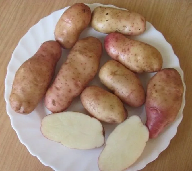 Кожура тонкая, с выраженной сетчатой структурой, что ощущается на ощупь. Ее окраска — нежный, равномерный розовый цвет, который является надежным маркером сорта. Глазки (почки) залегают неглубоко, они поверхностные и немногочисленные, что действительно облегчает последующую очистку клубней.