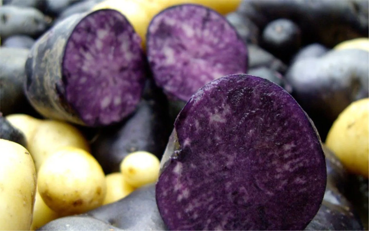 Отдельного внимания заслуживает кожура. Гладкая синяя оболочка не только декоративна, но и полезна, так как содержит антоцианы. Молодой картофель рекомендуется не очищать, а тщательно мыть щеткой и готовить в мундире. Это сохраняет полезные вещества и создает эффектный контраст на срезе.