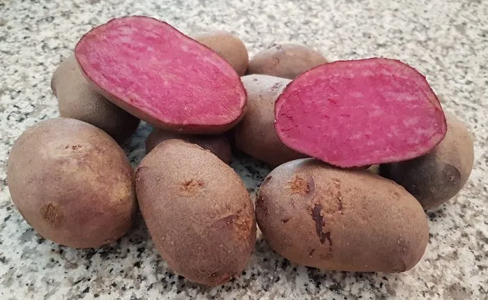 Главная отличительная черта, которая выводит вкусовые впечатления на новый уровень, — это устойчивая красная окраска мякоти. В отличие от многих других сортов с цветной мякотью, она не теряет свой нежный оттенок при варке, тушении или запекании.