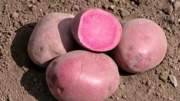 Главной визитной карточкой Эликсира является уникальная окраска мякоти. В отличие от большинства сортов с красной кожурой, имеющих стандартную белую или кремовую внутреннюю часть, этот картофель обладает насыщенной красной мякотью. Это не просто декоративный признак. Такой цвет обусловлен высоким содержанием антоцианов – природных антиоксидантов, которые сохраняются в клубне даже после термической обработки.