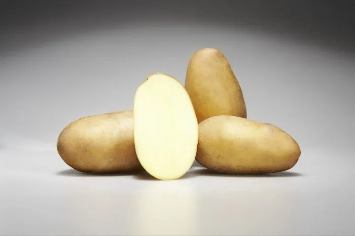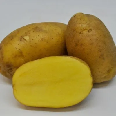 Комбинация овальной формы, желтой кожуры и желтой мякоти делает этот картофель визуально узнаваемым и соответствующим рыночным предпочтениям. Такие клубни выглядят аппетитно, а их внешний вид точно отражает хорошие столовые и кулинарные качества.