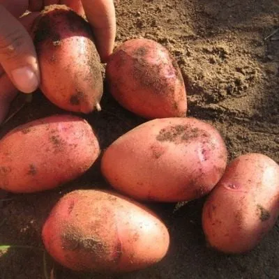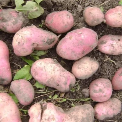Форма овальная, правильная, без бугров и искривлений. Это обеспечивает удобную упаковку, транспортировку и механическую обработку. Кожура гладкая, с легким глянцевым блеском, что придает клубням нарядный вид. Ее розовая окраска является сортовым признаком и сохраняется при хранении.