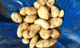 - Аккуратная выкопка. Учитывая, что клубни Каптивы крупные (средняя масса 101-238 граммов) и имеют удлиненную форму, повышается риск их порезать лопатой. Предпочтительнее использовать вилы или картофелекопалку, которые меньше травмируют картофель. Подкапывайте куст с небольшим отступом от стеблей, чтобы не повредить самые крупные экземпляры, часто расположенные по периферии гнезда.