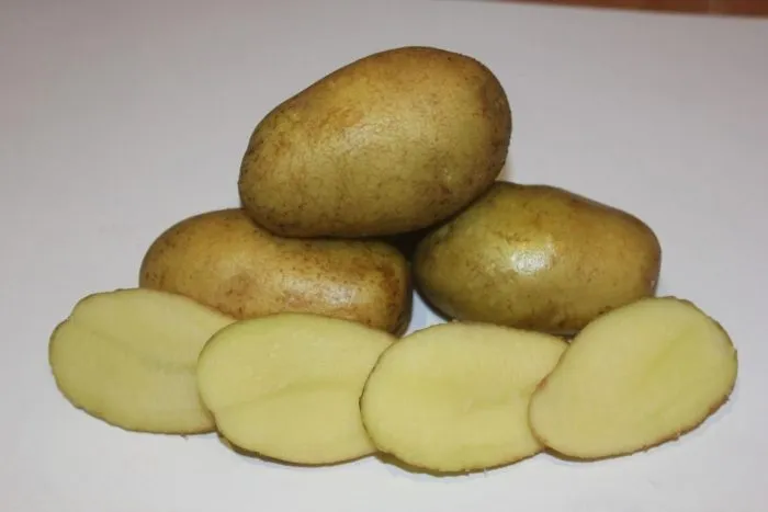Внешний вид клубней – один из ключевых признаков сорта. Они имеют правильную, выровненную овальную форму. Такая геометрия не только эстетична, но и практична: клубни меньше травмируются при уборке и лучше хранятся.