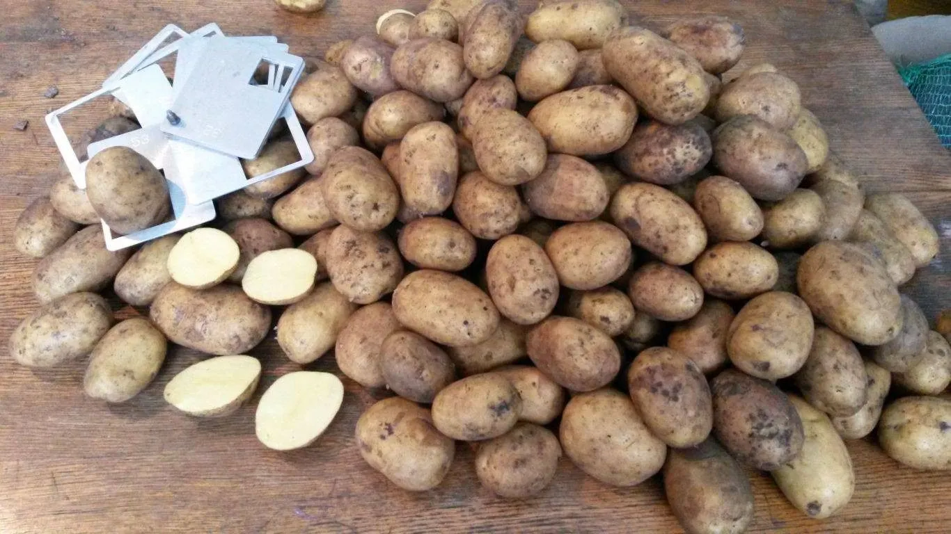 Клубни имеют стабильную, однородную овально-округлую форму без склонности к образованию наростов или перетяжек. Такая правильная геометрия не только эстетична, но и практична: картофелины удобно мыть, фасовывать и чистить.